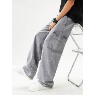 SHEIN Teen Boy Fashion Casual Vintage Designed Wash Water Blue Loose Straight Leg Jeans, Thanksgiving Costume Dailywear And Fall/Winter
